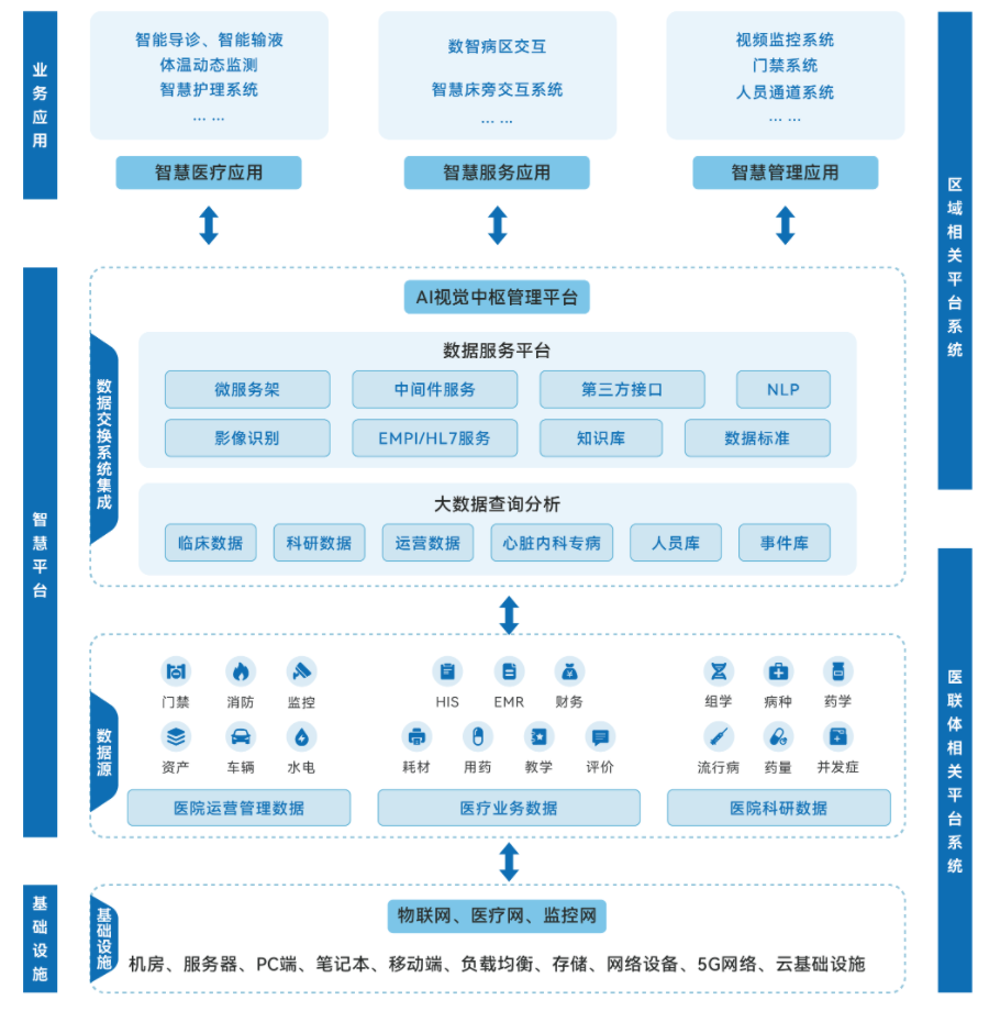 愛迪科技智慧醫(yī)療解決方案聚焦醫(yī)院服務場景和流程需求,對醫(yī)院的實體空間進行數字化升級,以AI視覺中樞管理平臺為核心,接入醫(yī)院專有業(yè)務系統、安防、消防等各應用子系統,形成醫(yī)院綜合管控一體化平臺,對院區(qū)的人員、車輛、物資實行全方位、多業(yè)務的融合智能管理,全面提升醫(yī)院的管理能力、服務能力、安全防護能力,降低運營成本,為醫(yī)患提供安心的診療環(huán)境提高診療效率,緩解醫(yī)患矛盾。